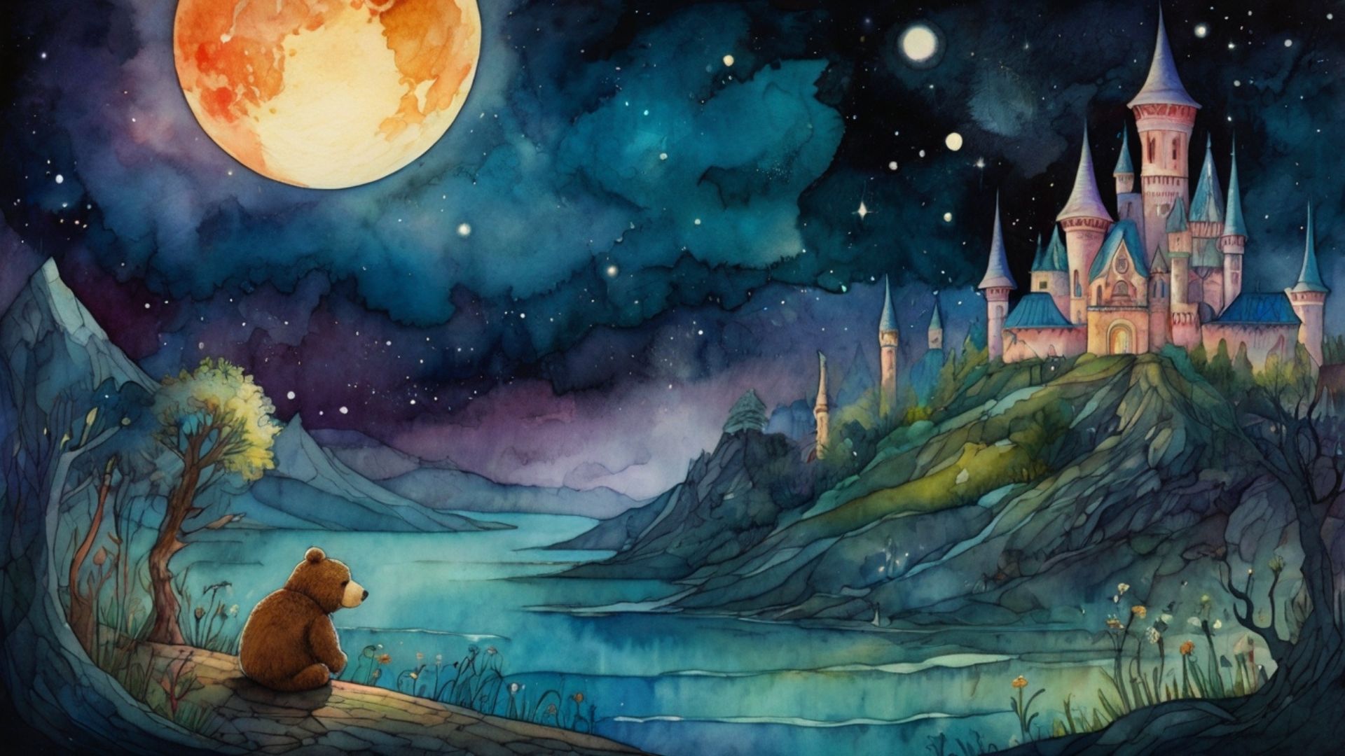Jiní medvědi si lehli, zavřeli oči a hotovo. Ale Hubert? Ten si musel sednout ke vchodu do jeskyně, dívat se na nebe a počkat, až se objeví první hvězdička. Teprve pak se mu začaly klížit očka. Jedné