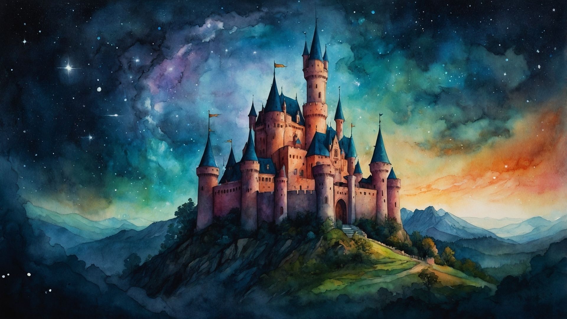 Nebyla ani vysoká, ani nízká. Ani hladká, ani skalnatá. Ani tam, ani jinde. Prostě… Hora Nehora — ta, která je a zároveň není. A na jejím vrcholku stál Kouzelný zámek . Byl postavený z mlhy, kamene a