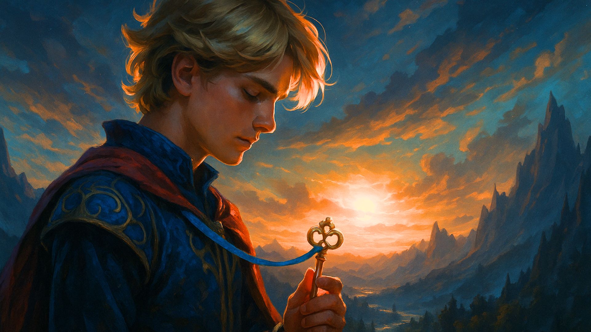 Když se malý princ narodil, někdo mu zavěsil kolem krku klíček na modré stužce. Nikdo nevěděl, odkud se vzal. Král zuřil: „Co je zamčeno, to se odemyká jen mou vůlí! Jaký klíč, k čemu?!“ Poručil klíč