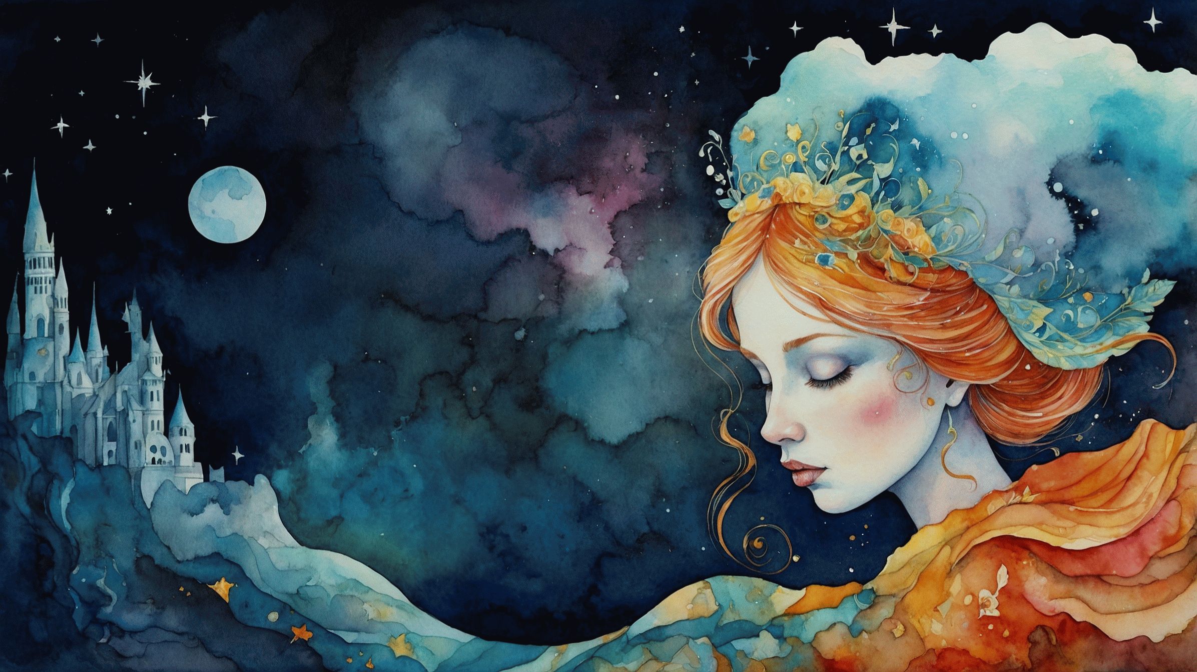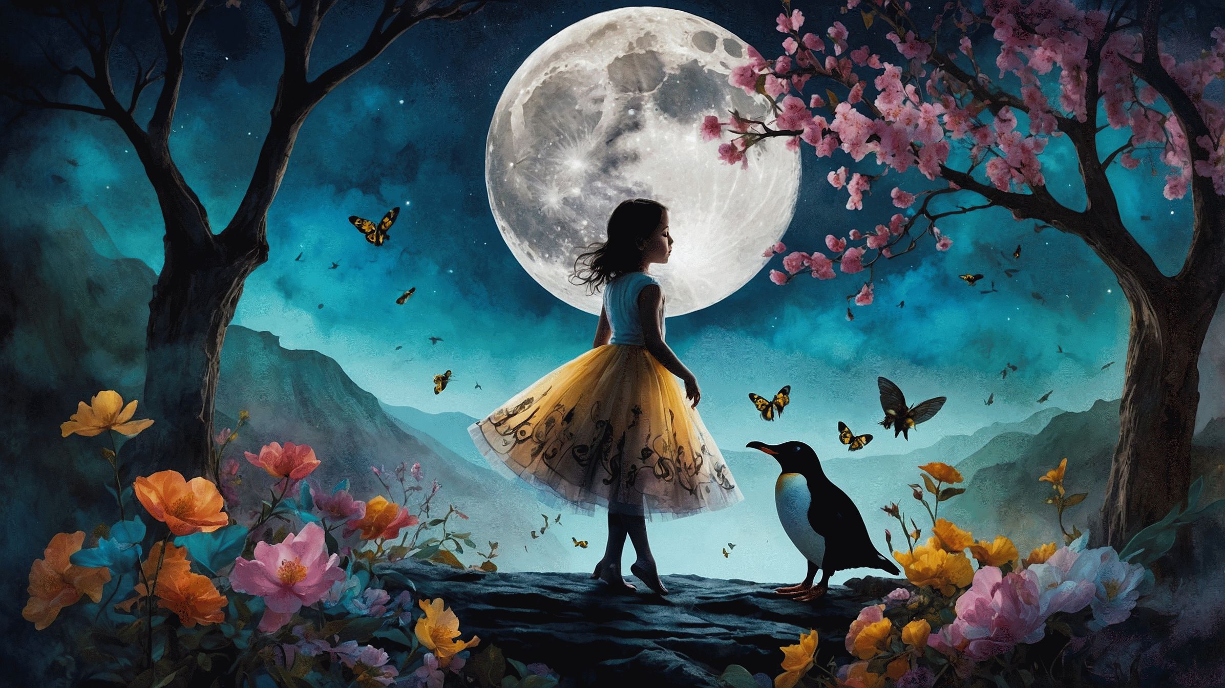 Když vítr šeptal v trávě, slyšela smyčce. Když kapky rosy dopadaly na listy, slyšela bubínky. A když se její srdce smálo, slyšela flétnu, i když právě žádnou v ruce neměla. Jedné noci, když měsíc vis