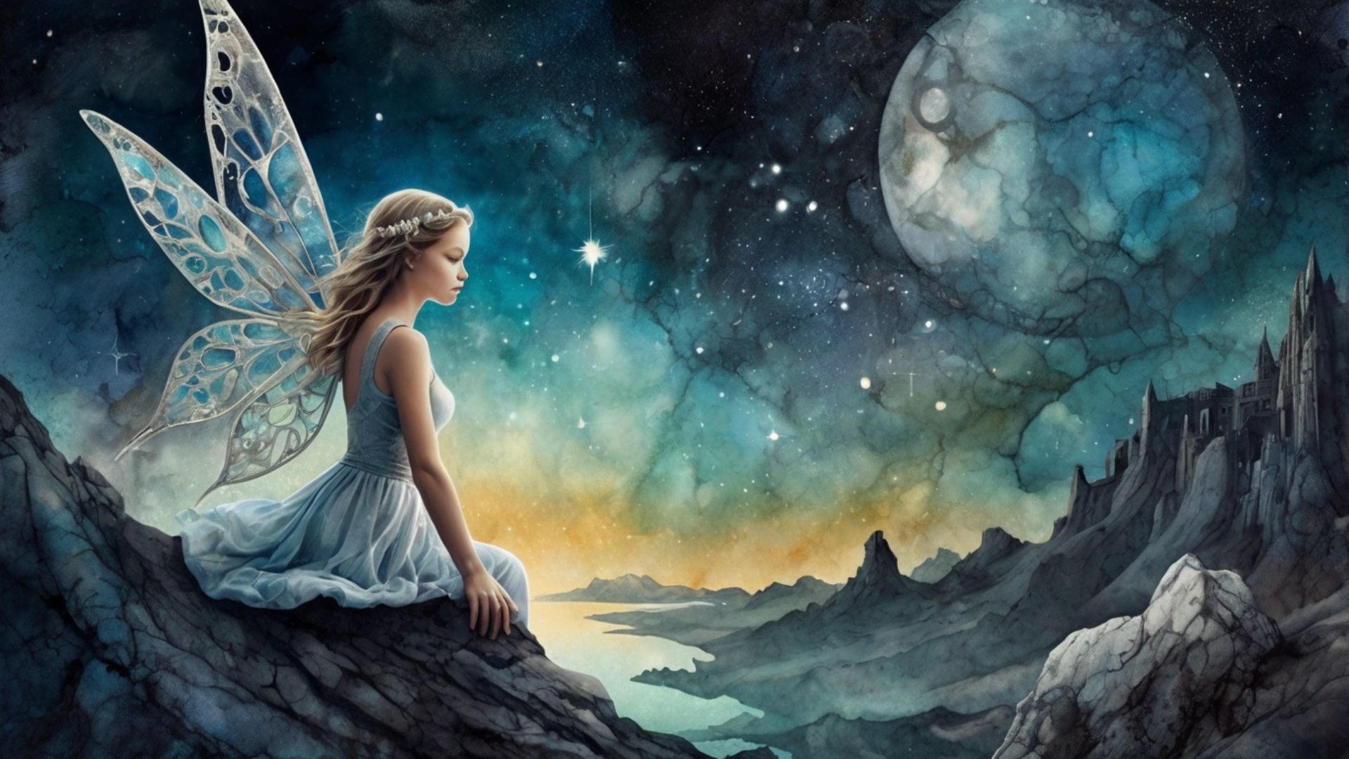 Říkalo se jí tak proto, že se zrodila z prasklé lastury, kterou k břehu přinesla voda po bouři. Lastura se zaleskla v měsíčním světle a z jejího vnitřku vystoupila bytost s křídly jemnými jako odlesk